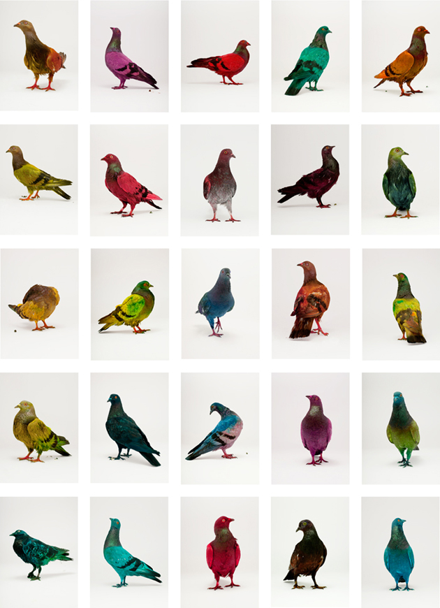 Spray Painted 35 pigeons in Copenhagen